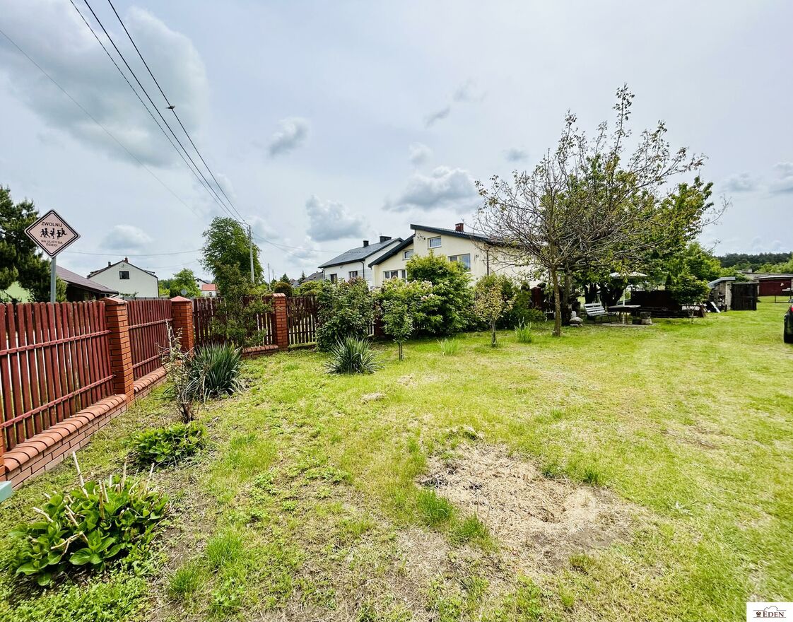 Nieruchomość posiada bezpośredni dostęp do drogi asfaltowej. Posesja ogrodzona płotem drewnianym i siatką, brama automatyczna, na podjeździe kostka brukowa. Teren nieruchomości porośnięty roślinnością trawiastą oraz nasadzeniem drzew owocowych i krzewów, które odgrywają kluczową rolę w kształtowaniu klimatu i uroku działki.